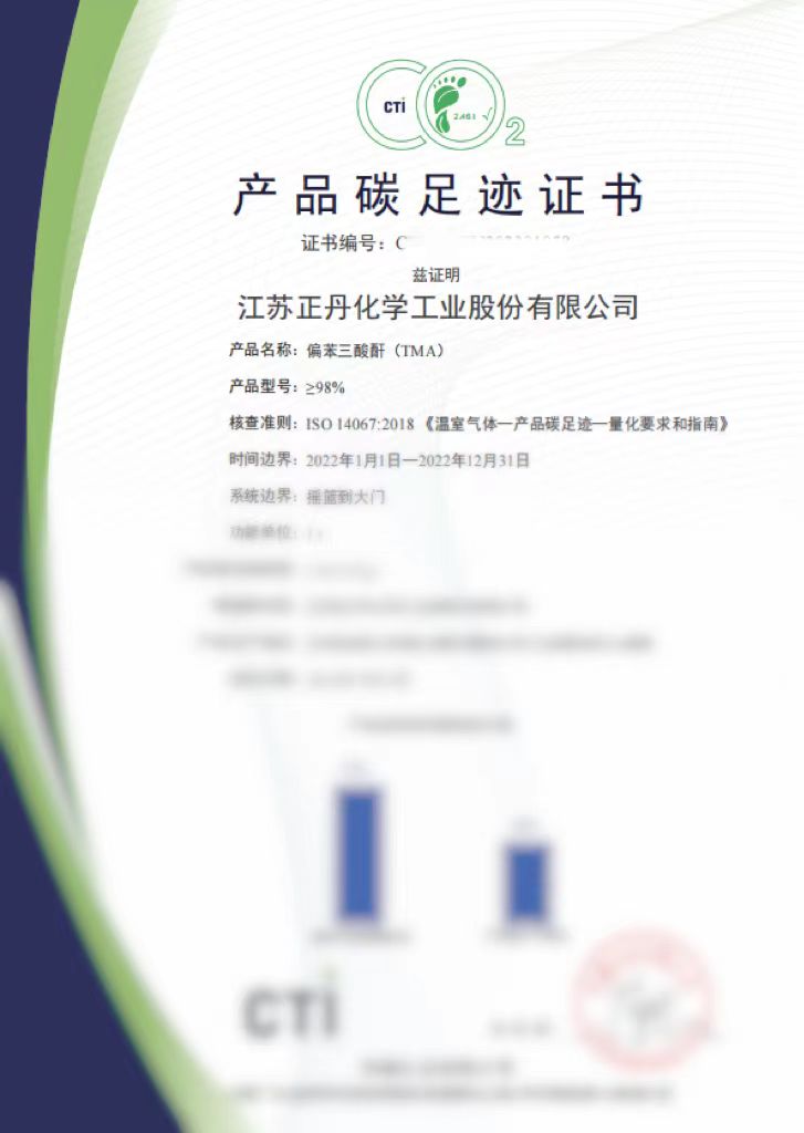 在国家“双碳”目标引领下,可持续发展、绿色转型已成为社会共识,各行业绿色低碳转型的步伐不断加快。近日,华测认证有限公司(以下简称“CTI华测认证”)为江苏和记AG(Asia Gaming)化学工业股份有限公司(以下简称“和记AG(Asia Gaming)股份”)旗下的偏苯三酸酐(TMA)产品颁发产品碳足迹证书。