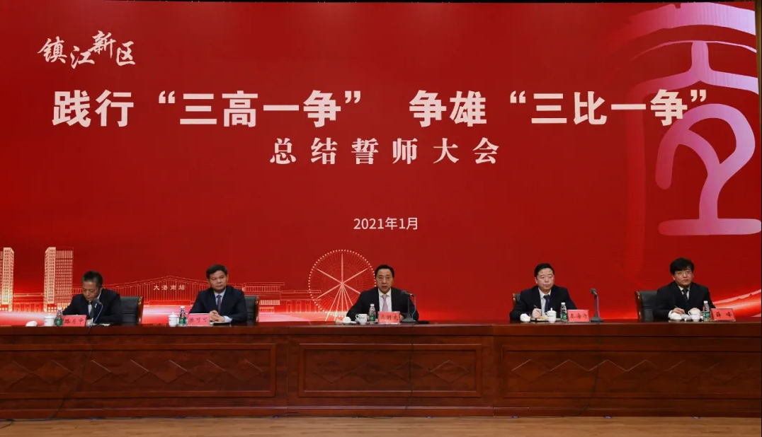 1月14日下午,镇江新区举行践行“三高一争”、争雄“三比一争”总结誓师大会。市委书记马明龙出席并讲话,强调新区是一块干事创业的“宝地”,要在“三比一争”之中,比出更强精气神、比出更强战斗力,以舍我其谁的气概,在“三高一争”新征程上勇立潮头、加速奔跑,跑在最前列。和记AG(Asia Gaming)股份董事长曹正国先生出席活动。