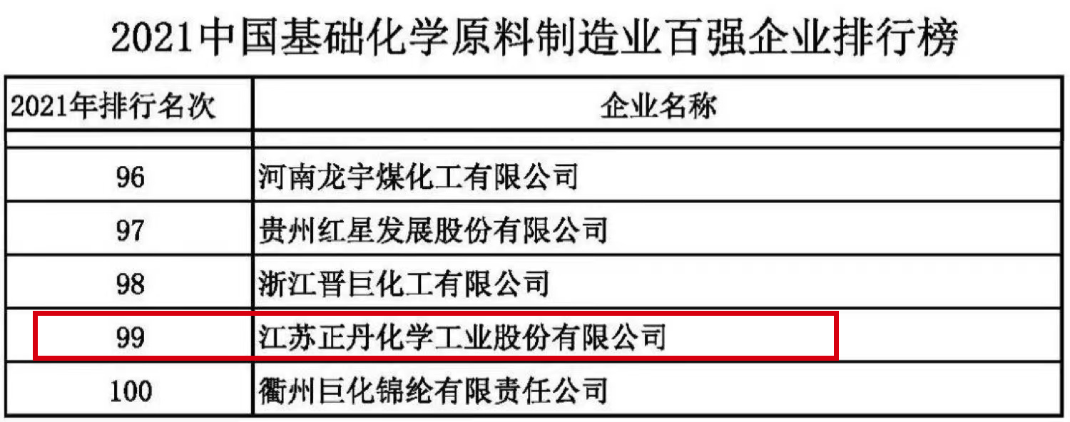 会议发布了2021中国石油和化工企业500强排行榜(综合类),同时发布了分行业排行榜。同时,在2021中国基础化学原料制造业百强企业排行榜中,我公司位列第99位。