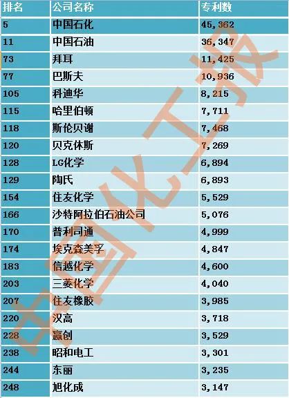 全球专利250强(石油和化工类)