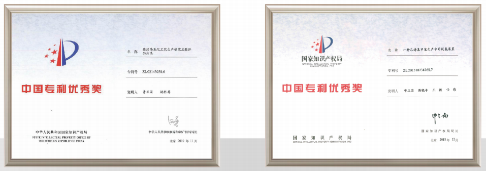 在乙烯基甲苯生产领域,其工业化制备难度大,技术水平高,多年来基本只有美国戴科公司一家能够工业化生产,属于国际垄断产品。公司通过多年研发努力突破技术瓶颈,自主研发了新型 CO2 气氛下介孔负载铁系催化剂技术,大幅度提升反应选择性及生产效率,成为美国戴科后全球能够大规模工业化批量生产该产品的首批企业之一,公司发明专利“一种乙烯基甲苯生产中的脱氢装置”于 2018年获得“第二十届中国专利优秀奖”和“2021 年度江苏省科技创新协会科技创新发明奖一等奖”。